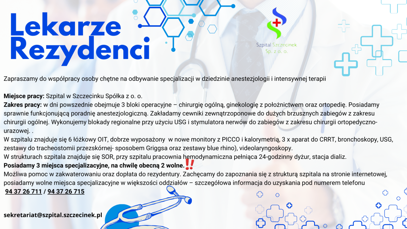 Zapoznaj się z aktualnymi ofertami pracy w Szpitalu w Szczecinku Sp. z o.o. i dołącz do naszego zespołu.
